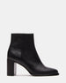 The JOZIE bootie is a cropped ankle height design with a sleek upper set on a matched block heel for an understated monochrome look.