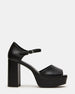The LONDON BLACK LEATHER features a sturdy platform paired with a block heel for enhanced stability and comfort. Its secure ankle strap ensures a confident fit. making these heels a sophisticated choice for all-day wear. Crafted with attention to detail. they combine style and practicality seamlessly.