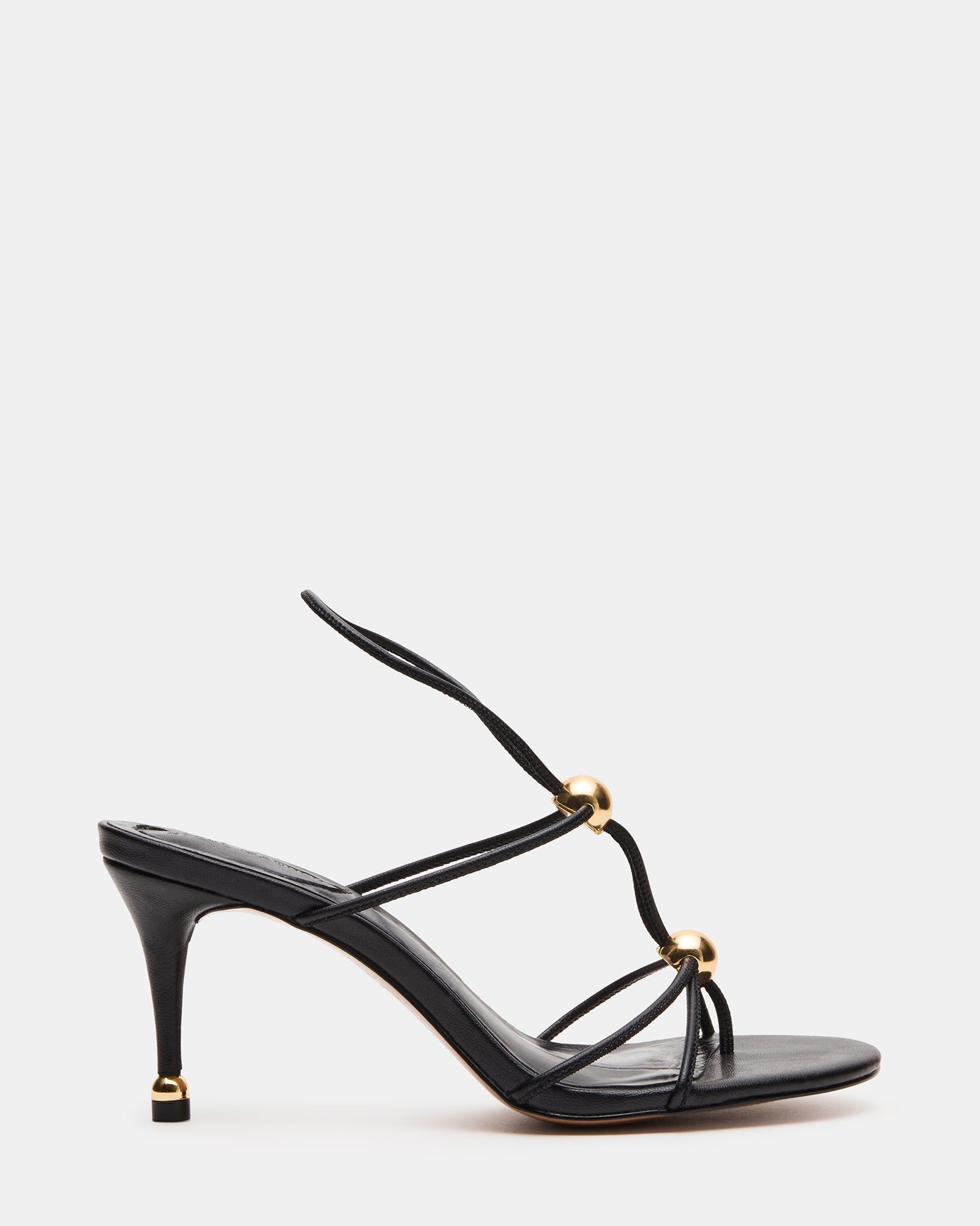 Introducing the RAMOS. the perfect combination of elegance and edge. Featuring a strappy stiletto heel adorned with gold hardware accents. these shoes will elevate any look. Step out in style and confidence with these stunning heels.